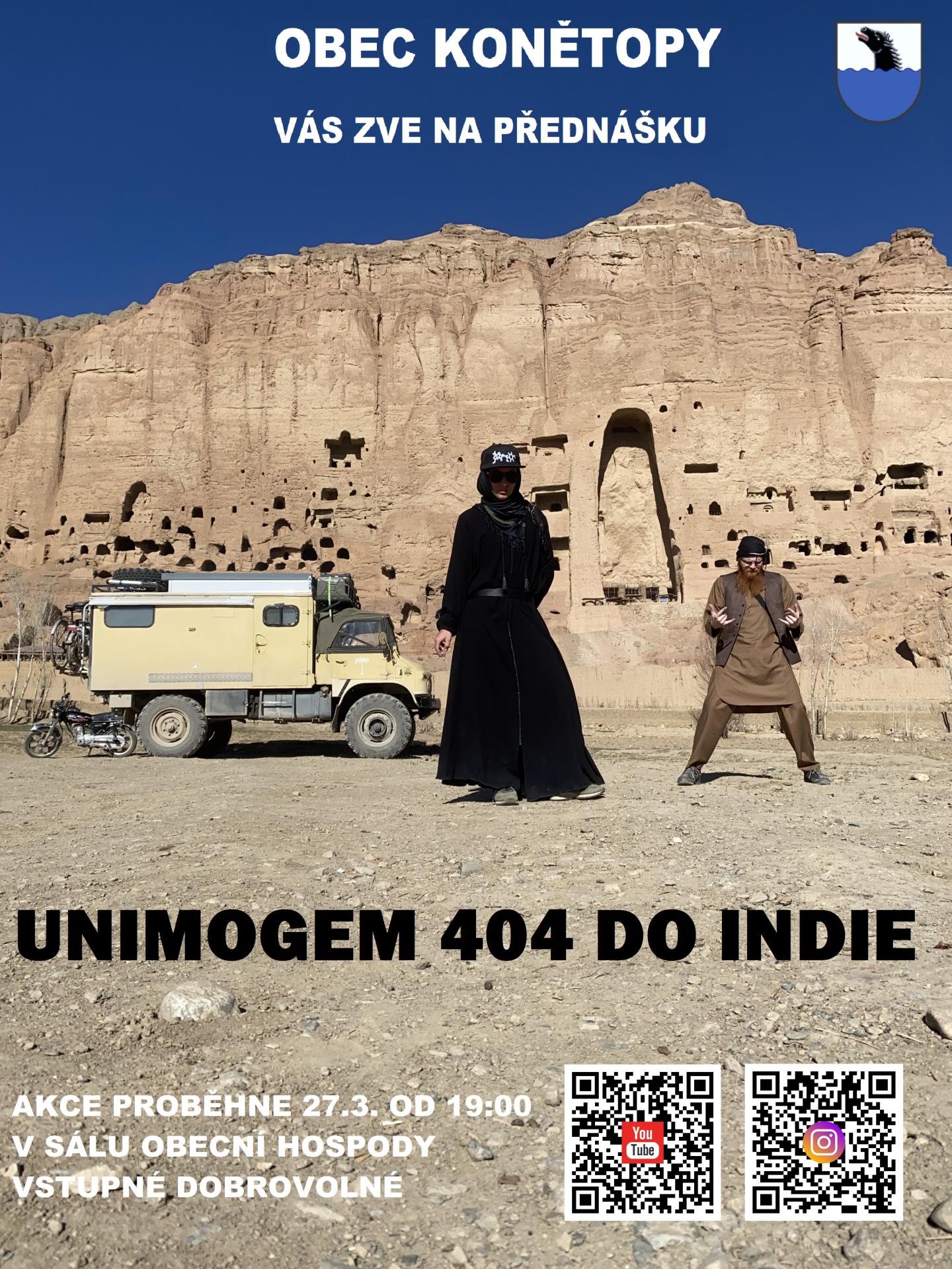 Obec Konětopy Vás zve na přednášku "UNIMOGEM 404 do INDIE" 27.3-2026 od 19 hodin na sále OH Konětopy, vstupné dobrovolné